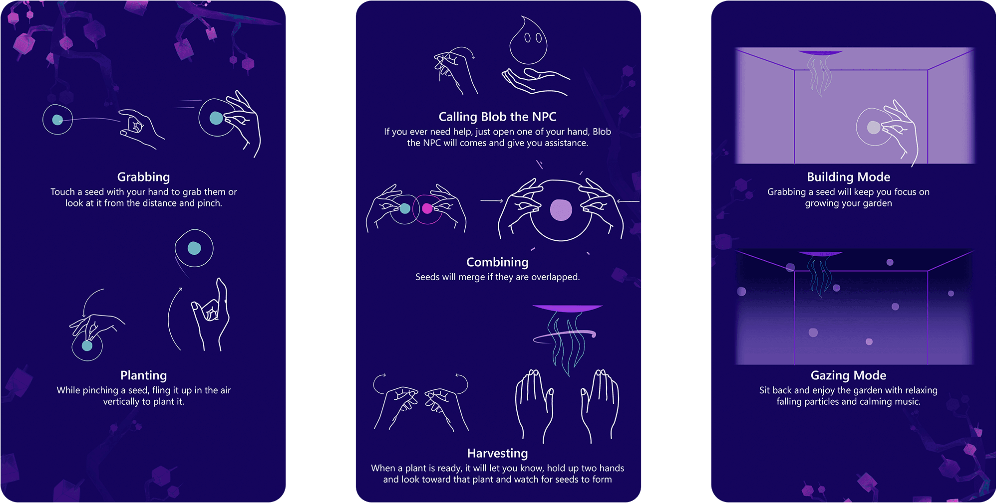 Game Design & Interaction: Co-developed the core gameplay loop and the unique "Gazing Mode" to reward stillness. Storyboarded interaction sequences to guide developers in implementing satisfying physics-based mechanics for planting and harvesting.